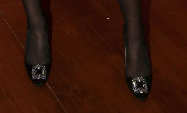 Το συνδύασε με μαύρες γόβες με ασημένιο κόσμημα τις οποίες λατεύει η “Κάρι Μπράντσο”.