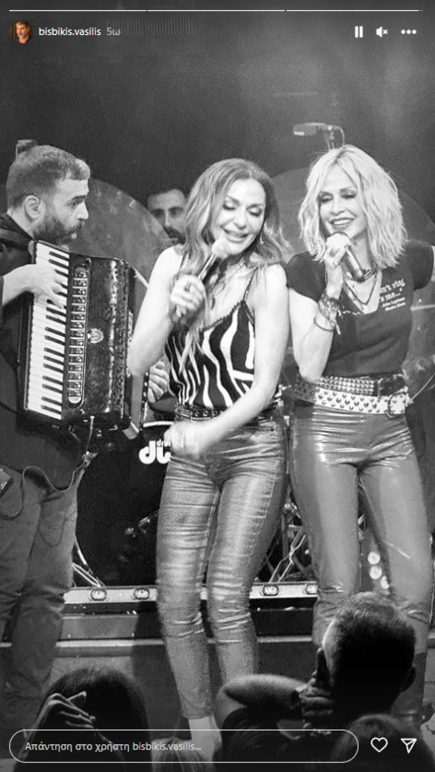 Instagram story από τη βραδιά ανέβασε και ο ηθοποιός. Ο Βασίλης Μπισμπίκης ανάρτησε μία φωτογραφία με την Άννα Βίσση και μία ακόμη στην οποία η τραγουδίστρια είναι στην πίστα με τη Δέσποινα Βανδή.