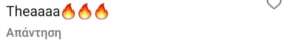 Στα σχόλιά τους οι followers της πέρα από το πόσο εντυπωσιακή έδειχνε η ίδια με το φως του ηλιοβασιλέματος να πέφτει μαλακά επάνω της, σχολίασαν και τη ρομαντική – ερωτική διάθεση της όλης ανάρτησής της και τον συνδυασμό αυτής της εικόνας με τη συγκεκριμένη λεζάντα.