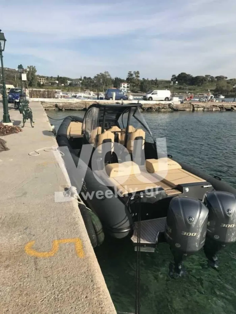 Το σκάφος του ζευγαριού είναι τελευταίας τεχνολογίας, με υπέροχο design -το καμάρι της εταιρείας Ribco, πρώην Scorpion- και κοστίζει περίπου 100.000 ευρώ.
