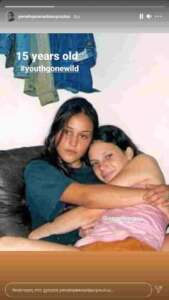 Στην τελευταία φωτογραφία που ανάρτησε, τη βλέπουμε στην εφηβεία, να ποζάρει αγκαλιά με μια φίλη της.