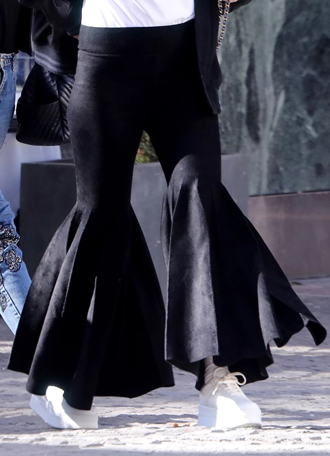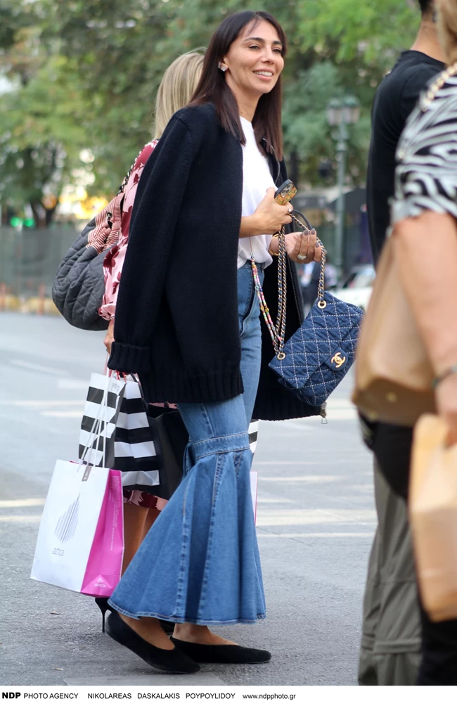 Η Χοψονίδου έχει φορέσει ξανά ανάλογο παντελόνι σε τζιν, από τον ίδιο σχεδιαστή. Τότε το είχε συνδυάσει με μπαλαρίνες.