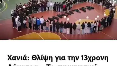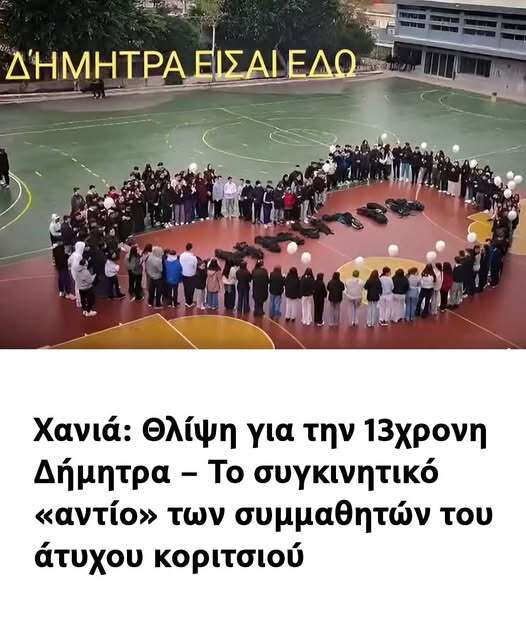 Με έναν άκρως συγκινητικό τρόπο θέλησαν να πουν το δικό τους αντίο, οι φίλοι και συμμαθητές της 13χρονης Δήμητρας στα Χανιά, που έφυγε από τη ζωή το πρωί της Τετάρτης (05/02) στο Νοσοκομείο Χανίων, μετά από συψαιμικό σοκ.