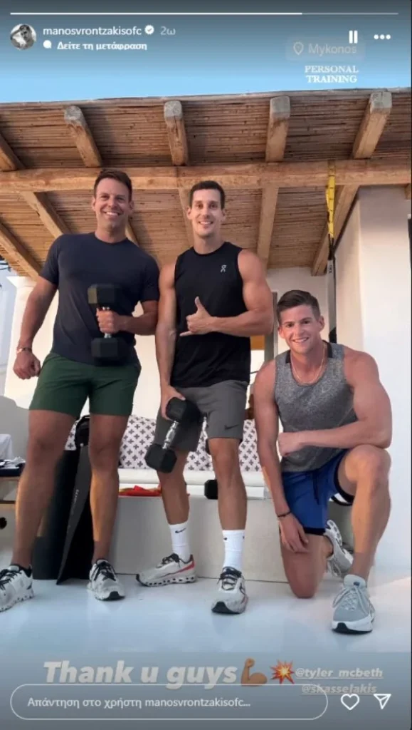 Σημειώνεται ότι πρόσφατα κυκλοφόρησαν φωτογραφίες από αναρτήσεις personal trainers, που δείχνουν τόσο τον πρόεδρο του ΣΥΡΙΖΑ όσο και τον σύζυγό του σε δραστηριότητες γυμναστικής. Η πρώτη φωτογραφία, η οποία παρουσιάζει τον Στέφανο Κασσελάκη να εκτελεί άσκηση plank, εμφανίστηκε στα stories του γυμναστή Θάνου Αντωνιάδη.