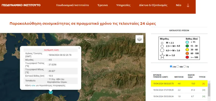 Η δόνηση έγινε 11 Χλμ. ΑΒΑ του Καρλοβασίου Σάμου και είχε εστιακό βάθος 10 χιλιομέτρων.