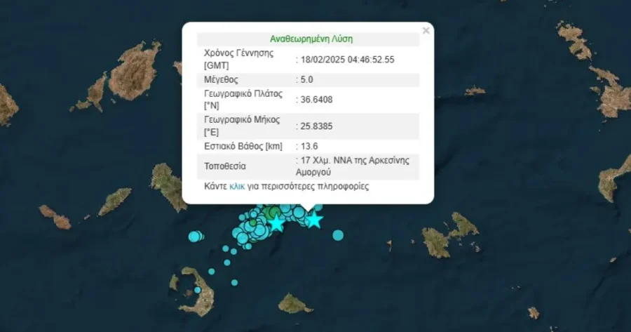 Σεισμός τώρα 5 Ρίχτερ ανοιχτά της Αμοργού – Αισθητός και στην Αττική