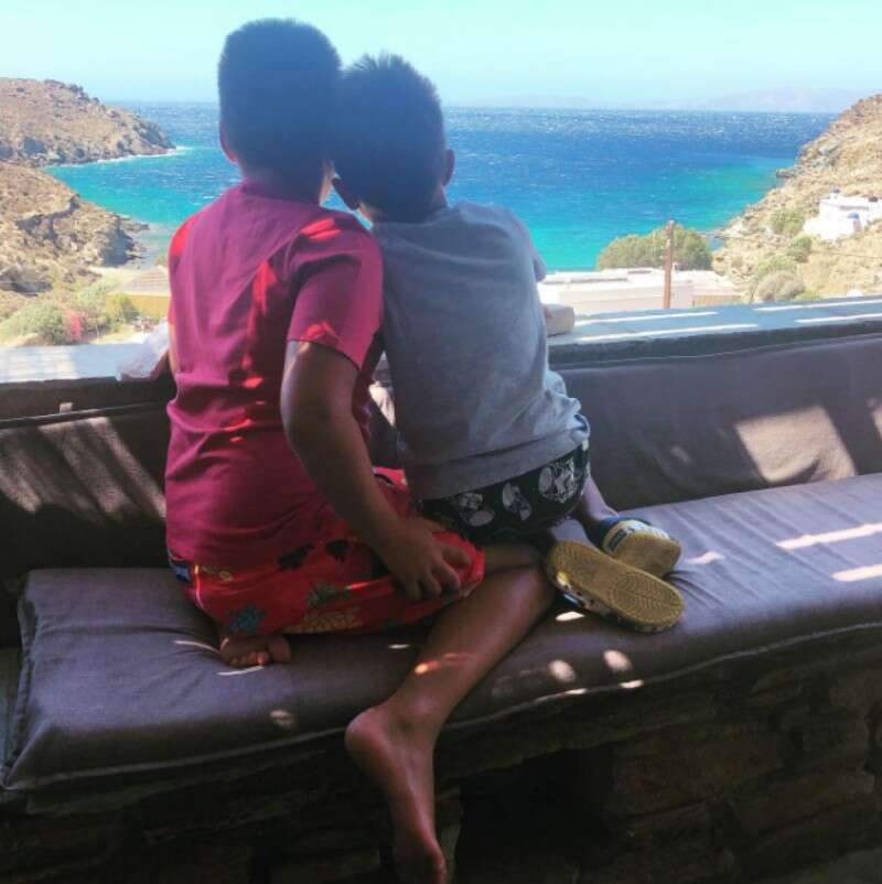 Οι δυο γιοι του αγαπούν να περνούν τα καλοκαίρια τους στην όμορφη Τήνο, παρέα με τον πατέρα τους.