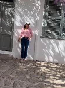 Άνετη και κομψή στην ‘Υδρα η Τατιάνα Στεφανίδου – Οι βόλτες στο νησί με denim και ροζ πουλόβερ και το τρικ για να φαίνεται πιο ψηλή.