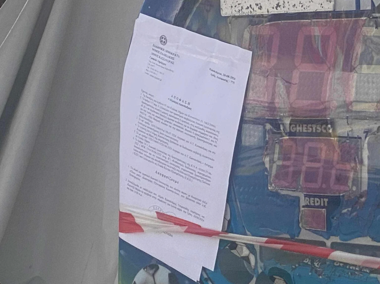 Η απόφαση του Δήμου Κασσάνδρας, η οποία εκδόθηκε από την ΕΛ.ΑΣ., τοποθετήθηκε στο σφραγισμένο λούνα παρκ.