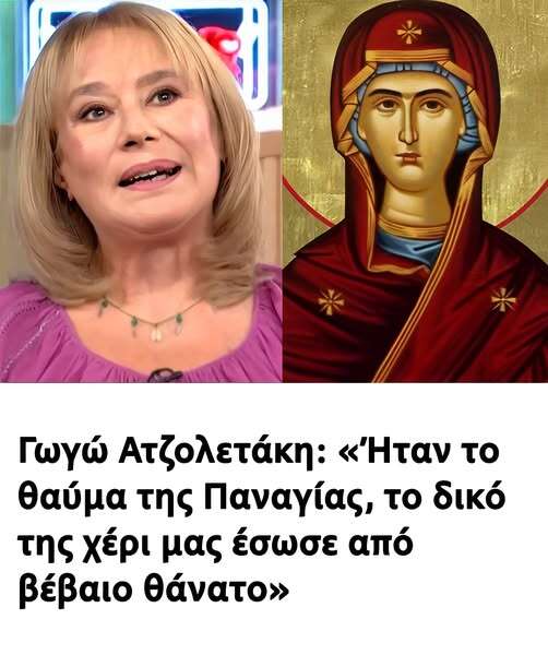Με αφορμή τη θεατρική της παρουσία αυτή τη σεζόν, η Γωγώ Ατζολετάκη έδωσε συνέντευξη στην εφημερίδα On Time Σαββατοκύριακο και τη δημοσιογράφο Σίσσυ Μενεγάτου. Μέσα σε όλα, δε, η δημοφιλής ηθοποιός μίλησε για την σχέση που διατηρεί με την πίστη και για το σοβαρό τροχαίο ατύχημα από το οποίο σώθηκε στο παρελθόν.
