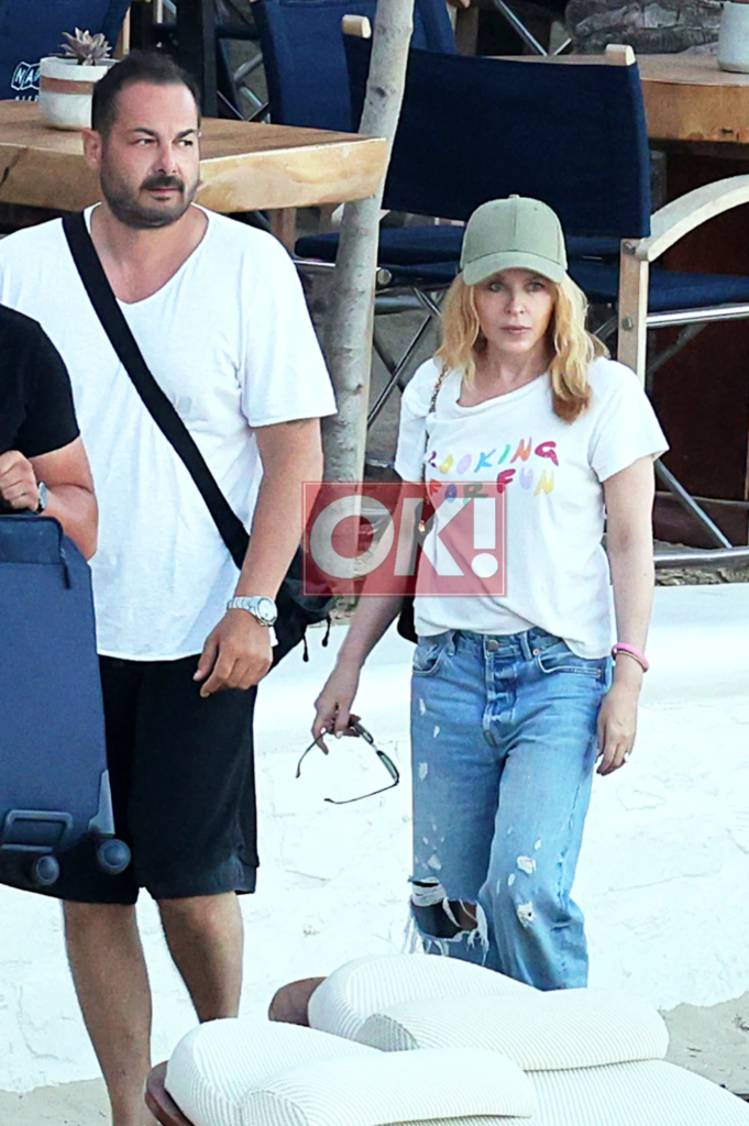 Μετά την εμφάνισή της, η Αυστραλή τραγουδίστρια με χαρά αποδέχτηκε την πρόσκληση της οικογένειας Μαρινάκη να περάσει μερικές ημέρες χαλάρωσης στη Μύκονο, όπου διαμένει αυτή τη στιγμή στο σκάφος τους.