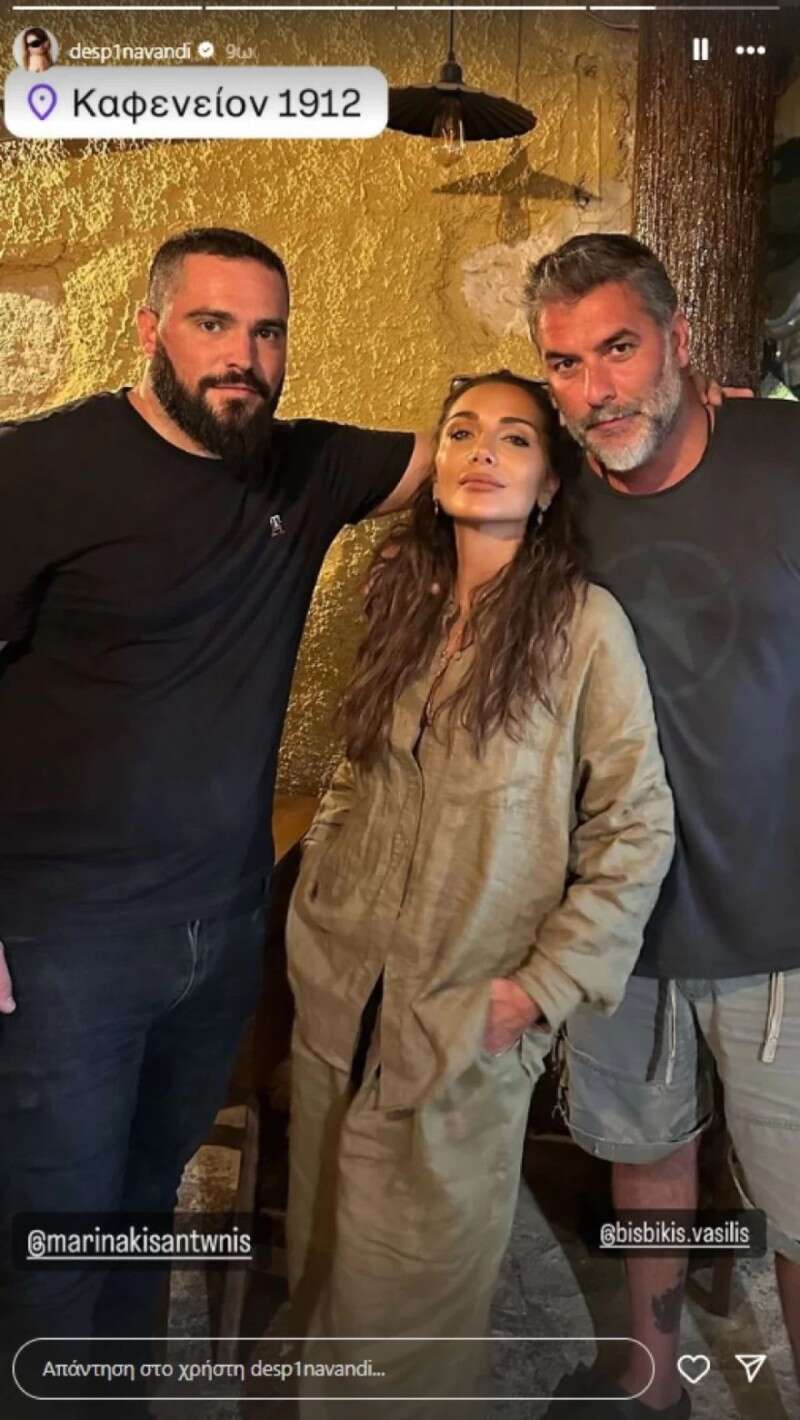 Τις επόμενες μέρες, όμως, παρέμεινε στο νησί για να χαλαρώσει μαζί με τον σύντροφό της, Βασίλη Μπισμπίκη, αφού είναι ο αγαπημένος τους προορισμός, και την Δευτέρα 5 η ίδια δημοσίευσε σε story στον προσωπικό της λογαριασμό στο Instagram μία φωτογραφία από την βραδινή τους έξοδο με παρέα.