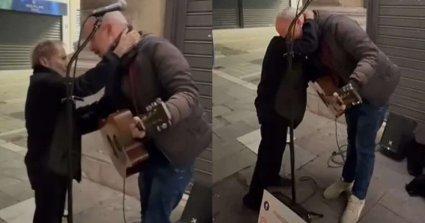 Ο Σταύρος Ξαρχάκος απόλαυσε πλανόδιο μουσικό να ερμηνεύει τραγούδι του και δεν δίστασε να τον αγκαλιάσει, λέγοντάς του έτσι ένα “ευχαριστώ”.