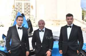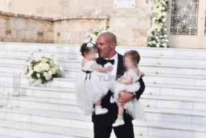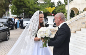 Μάλιστα, ο Μιχάλης Ζαμπίδης αντί να περιμένει την αγαπημένη του να ανέβει τα σκαλιά της εκκλησίας, την πλησίασε και αφού την έπιασε από το χέρι, της πρόσφερε την ανθοδέσμη και μαζί ανέβηκαν τα σκαλοπάτια προκειμένου να μπουν στο εσωτερικό του Ναού για να αρχίσει το μυστήριο του γάμου.