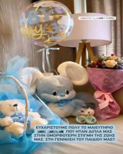 Πιο συγκεκριμένα, ο Απόστολος Ρουβάς δημοσίευσε μια φωτογραφία με τα διάφορα δώρα που δέχτηκαν με τη Φανή Γιαβρίδου για τη γέννηση του γιου τους και ευχαρίστησε το μαιευτήριο.