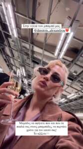 Σε ένα από τα βίντεο που δημοσίευσε στα κοινωνικά δίκτυα, η influencer εξέφρασε την ευγνωμοσύνη της προς τον Δημήτρη Αλεξάνδρου, ο οποίος ανέλαβε την φροντίδα του μικρού Πάρη κατά τη διάρκεια της απουσίας της. Με χιούμορ και αγάπη, ανέφερε: «Μωρό μου, πίνω στην υγειά σου, που είσαι τέλειος μπαμπάς και κρατάς τον Πάρη για να περνάω εγώ τέλεια με τους φίλους μου».