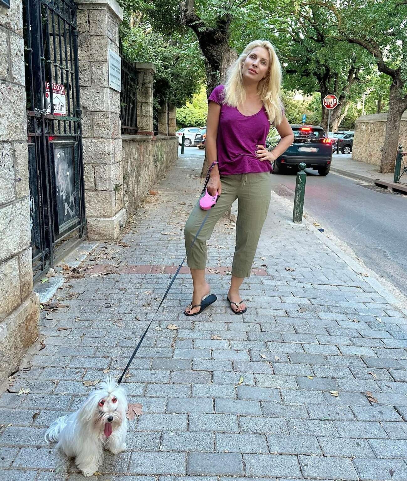 Η Ελένη δίχως ίχνος μακιγιάζ, ντυμένη casual και φορώντας σαγιονάρες έβγαλε βόλτα τον σκύλο της και δεν δίστασε να βγάλει μία φωτογραφία από την πρωινή βόλτα και να την αναρτήσει στον προσωπικό της λογαριασμό στο instagram.