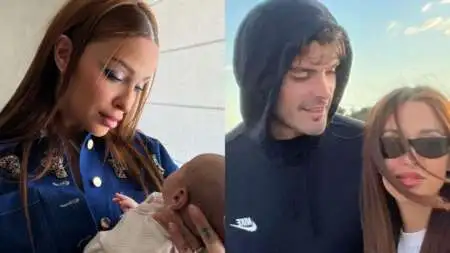 Παράλληλα, η τραγουδίστρια κοινοποίησε μια φωτογραφία από την περίοδο της εγκυμοσύνης της, αλλά και μια που κρατά στην αγκαλιά το μωράκι της.
