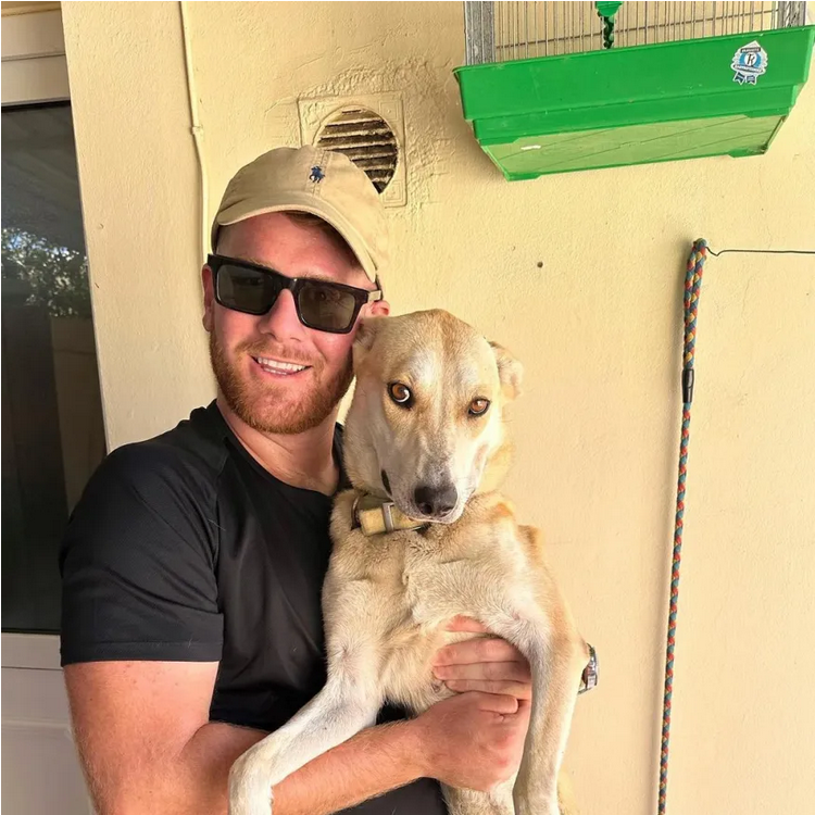 Πόζαρε στον φακό αγκαλιά με τον σκύλο και έγραψε στη λεζάντα: «Αρχικά ακόμη δεν βρήκα τον “ιδιοκτήτη” της, βρέθηκε στις φωτιές στο Γεννάδι.