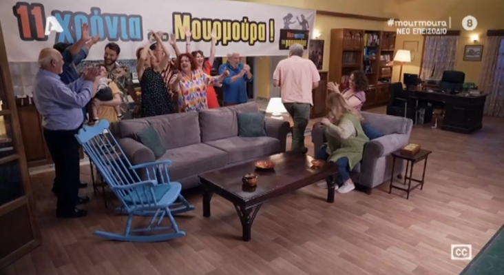 Στο τελικό σκηνικό, όλοι οι ήρωες εισέβαλαν στο σαλόνι, πέφτοντας με πανηγυρικό τρόπο η αυλαία για τη σειρά «Μην αρχίζεις τη μουρμούρα», γεμίζοντας το χώρο με επιφωνήματα χαράς και συγκίνησης.