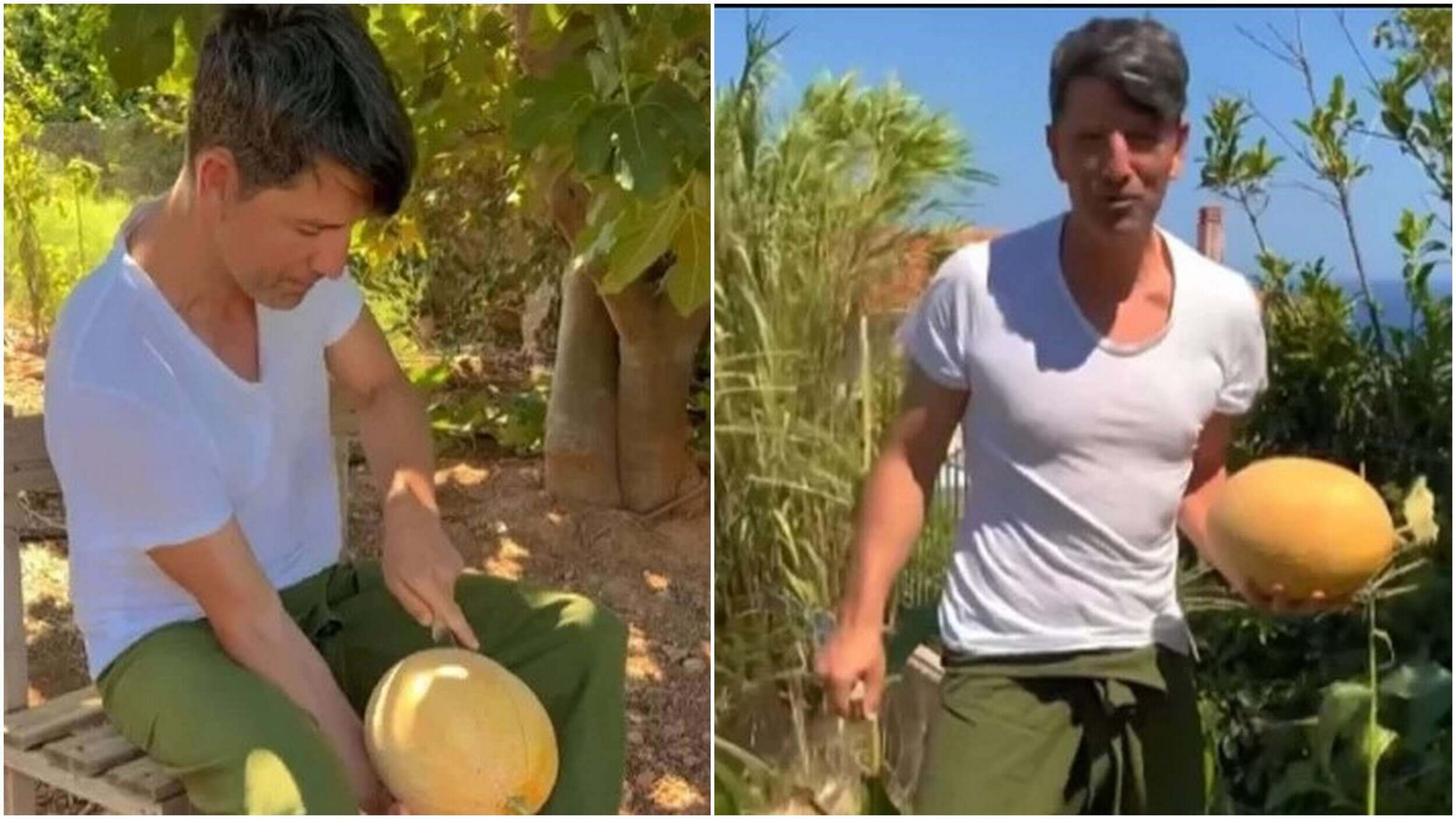 Πιο συγκεκριμένα, ο Σάκης Ρουβάς δημοσίευσε ένα σύντομο απόσπασμα στο οποίο τον παρακολουθούμε να κόβει ένα ωραιότατο πεπονάκι από το μποστάνι του και να το δοκιμάζει! «Από την παραγωγή στην κατανάλωση! Με συγκινεί κάθε φορά το μεγαλείο της φύσης και οι καρποί που απλόχερα μας προσφέρει» γράφει σαν λεζάντα ο δημοφιλής καλλιτέχνης στα social media.