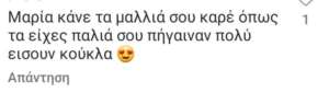 Οι followers της βλέποντας την αλλαγή της, αφενώς είπαν ότι της πηγαίνει πολύ, αφετέρου έκαναν την δική τους αντιπρόταση, αφού η Μαρία Ηλιάκη μπορεί να έκοψε τα μαλλιά της καρέ αλλά σε πιο μακρύ μήκος, ενώ οι fans της την προτιμούν με το πολύ κοντό καρέ που είχε κατά την περίοδο της καραντίνας. Καθένας ωστόσο, όπως και η Μαρία Ηλιάκη, είναι ελεύθερος να κάνει ό,τι τον ευχαριστεί με την εξωτερική του εμφάνιση.