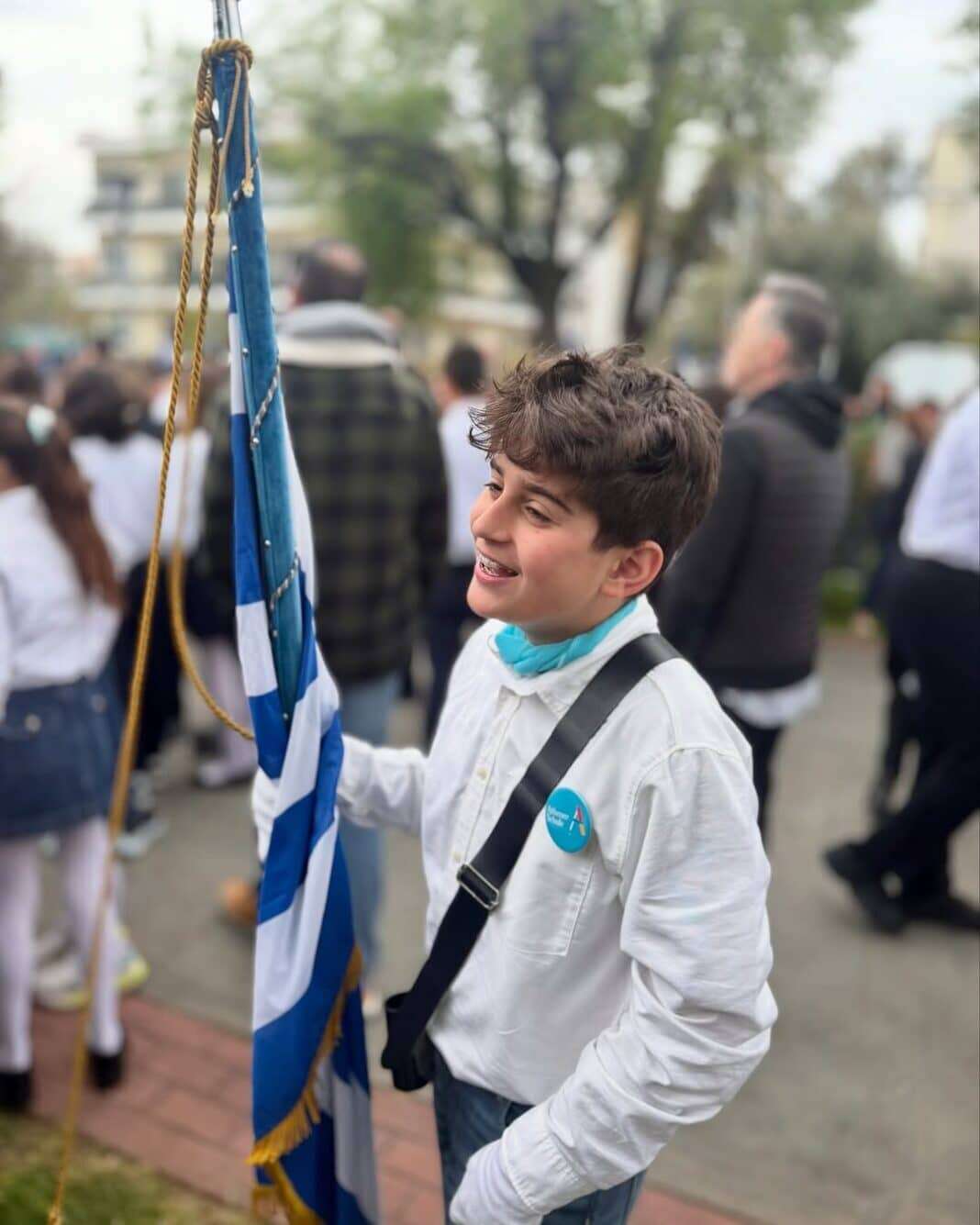 Ο Τάσος Ιορδανίδης ανέβασε φωτογραφίες στα social media για να δείξει τον γιο του που κρατούσε τη σημαία στην παρέλαση για την 25η Μαρτίου.