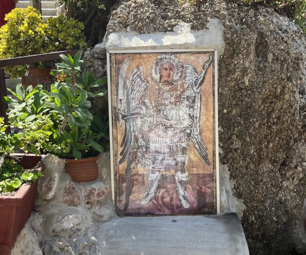 Βλέποντας τη σαγηνευτική θέα, που ο ουρανός ενώνεται με το γαλάζιο της Θάλασσας και στη μέση η σπηλιά, που είναι γεμάτη με εικόνες και τάματα ανθρώπων που έρχονται στο σημείο, η εικόνα αυτή προκαλεί δέος. Μάλιστα, στο σημείο υπάρχει και η εικόνα του Ταξιάρχη Μιχαήλ του Πανορμίτη, αντίγραφο, με την ασημένια πανοπλία του. Όπως ακριβώς τον είδαμε στο όνειρο μας, τον βρήκαμε στο «κρησφύγετό» του στη Ρόδο!