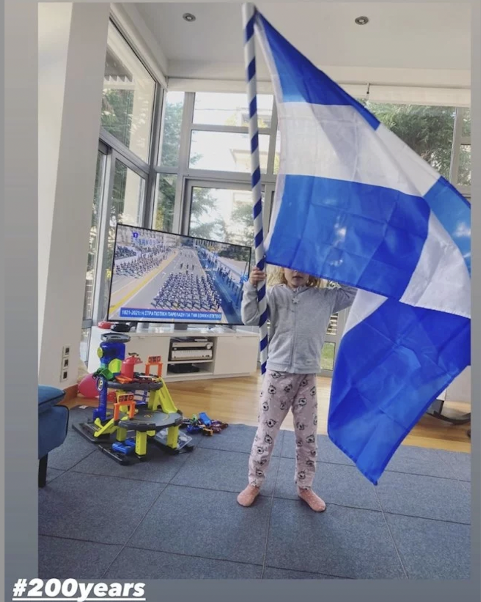 Μάλιστα, έδωσε μια γεύση από το σπίτι της όταν παρακολούθησε την παρέλαση της 25ης Μαρτίου από την τηλεόραση μαζί με την οικογένειά της. Δημοσίευσε δύο υπέροχες φωτογραφίες με τα παιδιά της να σηκώνουν την ελληνική σημαία μέσα στο σαλόνι τους.