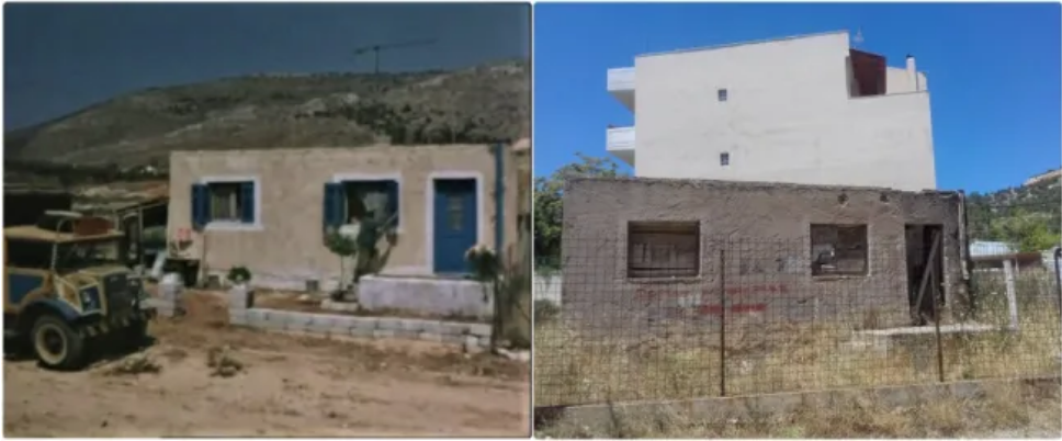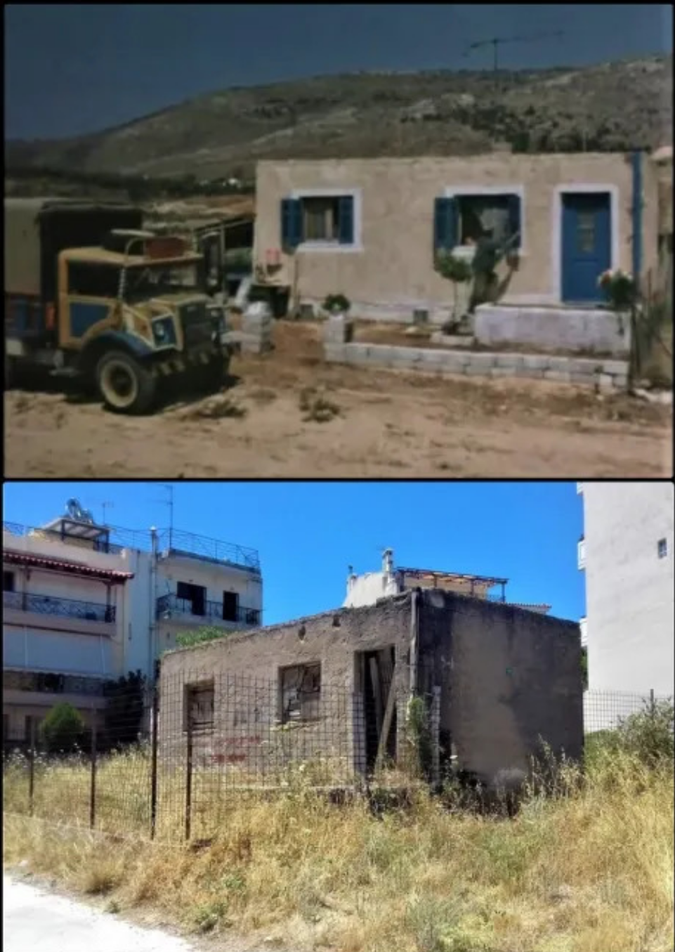 Τα πράγματα έχουν αλλάξει πια. Το μπλε χρώμα των παραθύρων του έχει εξαφανιστεί, οι περισσότερες αλάνες χάθηκαν και ένα συρμάτινο πλέγμα στο οικόπεδο κρατά αποκομμένο το χθες από το σήμερα. Το παρελθόν, όμως, στέκει εκεί, λερωμένο, φθαρμένο, φτωχό με σανίδες καρφωμένες στην πόρτα του, αλλά ακόμα όρθιο.