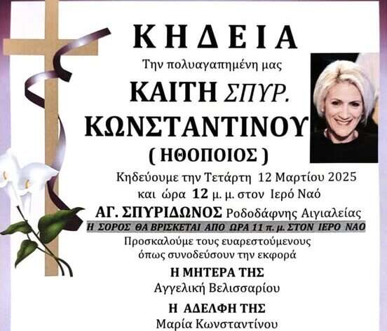 LifestyleΘρήνος για την αγαπημένη Καίτη Κωνσταντίνου – Που θα γίνει η κηδεία της
