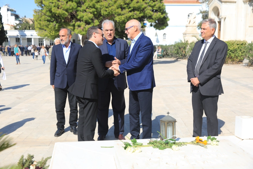 Ο πρόεδρος του ΠΑΣΟΚ Νίκος Ανδρουλάκης στο μνήμα της Φώφης Γεννηματά