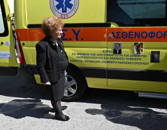 Σύμφωνα με την ΕΡΤ, η Ειρήνη Παρασκευοπούλου δώρισε το ασθενοφόρο στη μνήμη του μοναχογιού της, Παναγιώτη, που έφυγε πρόωρα από τη ζωή, του συζύγου της και του πατέρα της, με χρήματα που συγκέντρωσε από μια αγοραπωλησία.