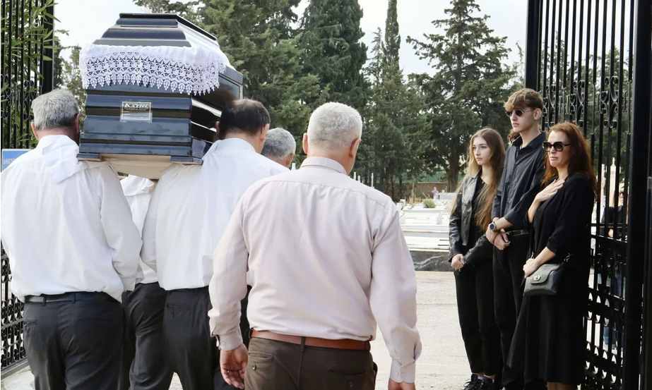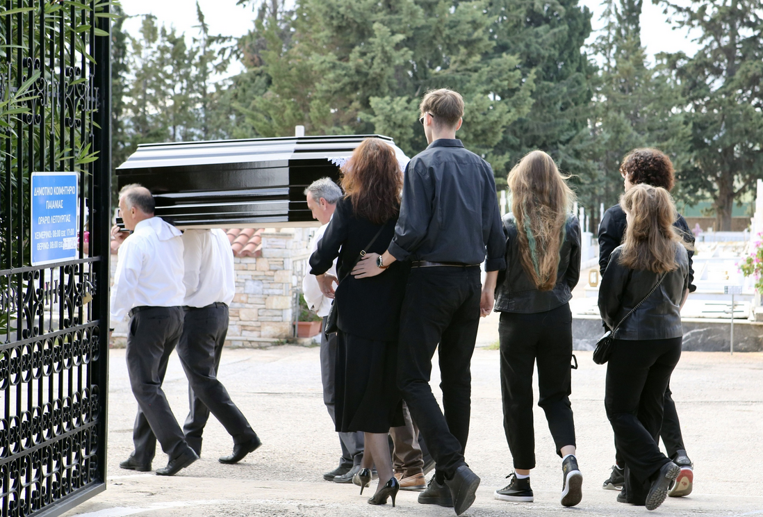 Τραγικές φιγούρες στο σημερινή δύσκολη ημέρα, η πρώτη του σύζυγος και τα παιδιά τους, οι οποίο τον «αποχαιρέτησαν» με δάκρυα στα μάτια.