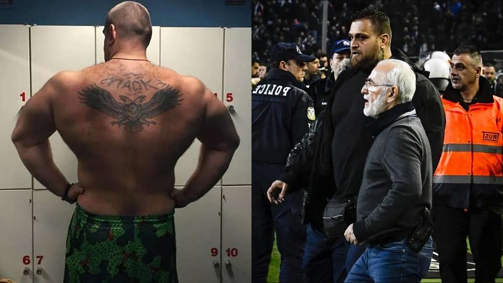 Το εντυπωσιακό τατουάζ με τον δικέφαλο αετό που έχει “χτυπήσει” στην πλάτη του επισφραγίζει το σύνθημα “ΠΑΟΚ-θρησκεία” γύρω από το οποίο περιστρέφεται η καθημερινότητά του.