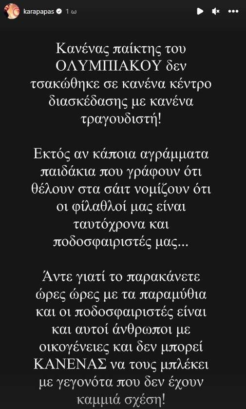 Το μήνυμα του Κώστα Καραπαπά μέσω Instagram αναφέρει: