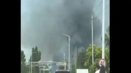 Βίντεο που μεταδόθηκαν έδειξαν μια γιγαντιαία στήλη γκρίζου καπνού να υψώνεται στον ουρανό, φωτιά σε μια βιομηχανική ζώνη και βιτρίνες καταστημάτων που προφανώς είχαν τιναχτεί στον αέρα από την έκρηξη.