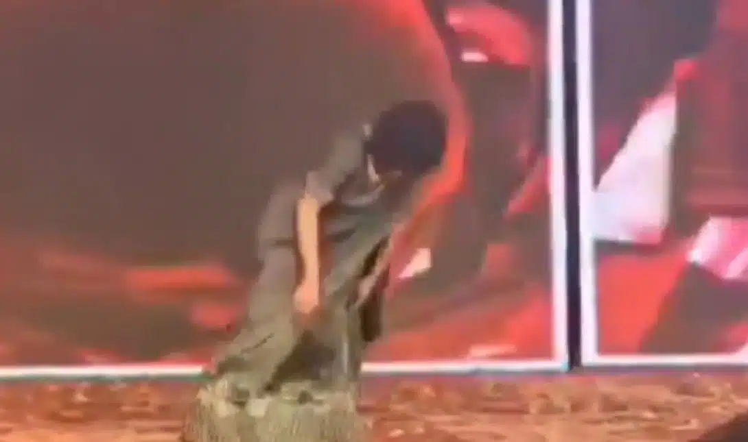 In the video, she is seen falling face-first as the celebration takes a heartbreaking turn.