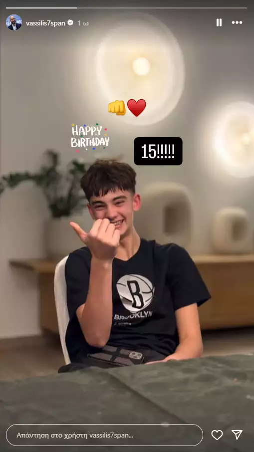 Ο πρώην μπασκετμπολίστας και νυν προπονητής ανέβασε στα social media φωτογραφία με τον γιο του, στέλνοντας τις ευχές του και μέσα από τα social media για τα γενέθλια του Θανάση.