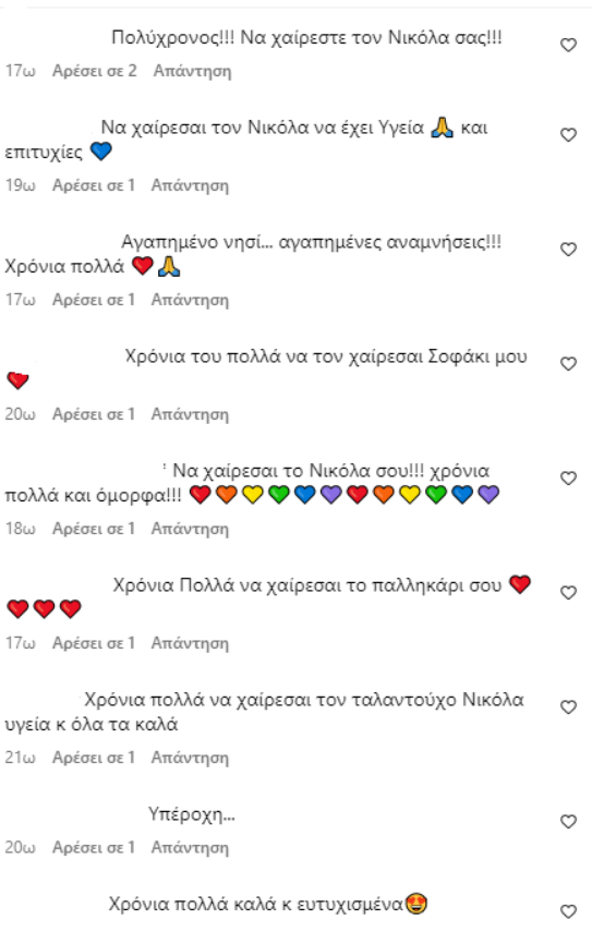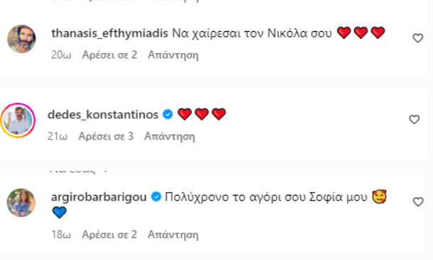 Ο Θανάσης Ευθυμιάδης, ο Κωνσταντίνος Δέδες και η Αργυρώ Μπαρμπαρίγου άφησαν το σχόλιό του και φυσικά δεν έλειψαν και οι ευχές από τους ακόλουθούς της.