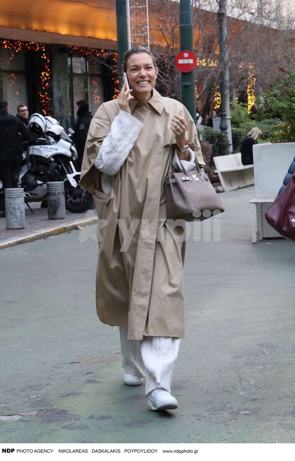 Η γνωστή παρουσιάστρια και μοντέλο απαθανατίστηκε κατά τη διάρκεια της εξόδου της σε πολύ καθημερινά στιγμιότυπα, δίχως ίχνος μακιγιάζ. Η ίδια φάνηκε χαλαρή και ευδιάθετη, μιλούσε στο κινητό, χαιρέτησε τους φωτογράφους και έδειχνε πιο φρέσκια από ποτέ.