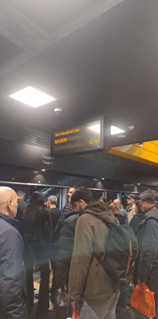 Πληροφορίες του makthes.gr αναφέρουν ότι λόγω του αυξημένου όγκου των επιβατών εντός των βαγονιών, ορισμένοι συρμοί αναγκάζονται να μην πραγματοποιούν στάσεις σε σταθμούς με πολύ κόσμο. Μέσω ανακοίνωσης, οι επιβάτες ενημερώνονται ότι ο διερχόμενος συρμός δεν θα πραγματοποιήσει στάση. Η κατάσταση ομαλοποιήθηκε μετά από μισή ώρα περίπου.