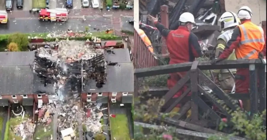 Πλάνα από μη επανδρωμένο αεροσκάφος δείχνουν πώς έξι διαμερίσματα στο κέντρο του κτιρίου φαίνεται να έχουν καταστραφεί ολοσχερώς από την έκρηξη και τη φωτιά, ενώ σωροί από συντρίμμια φαίνονται στο δρόμο έξω από το κτίριο.