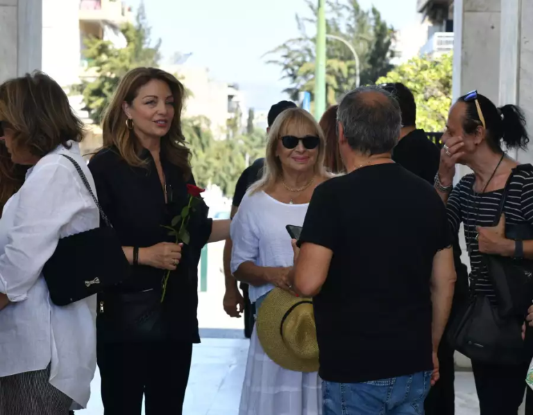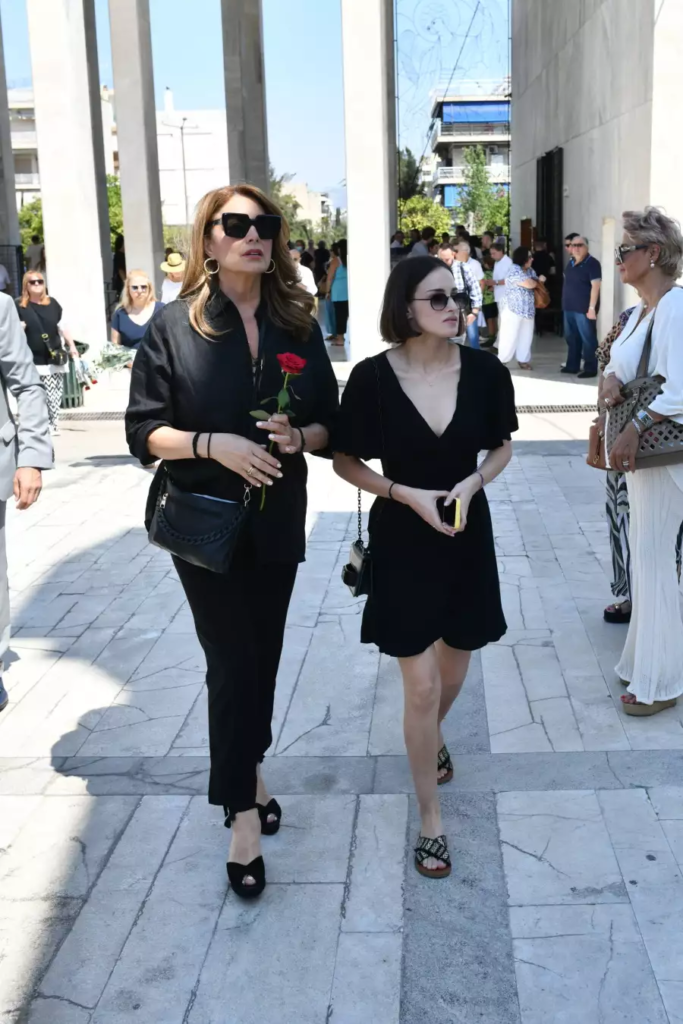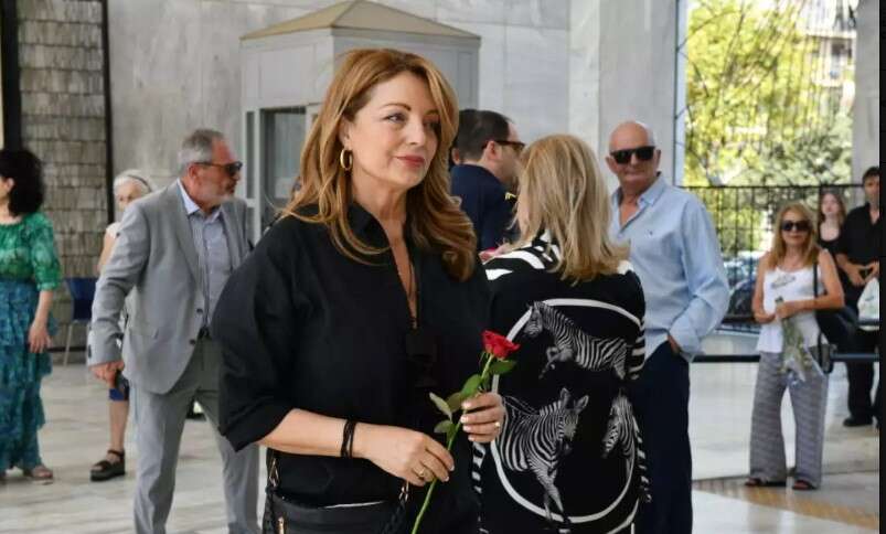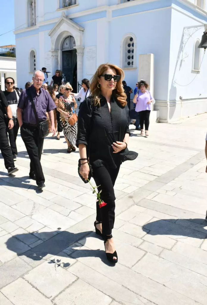 Η κυρία Γκερέκου έφτασε στον τόπο της τελετής λίγο πριν τις 11:30 το πρωί, φορώντας στα μαύρα και κρατώντας ένα κόκκινο τριαντάφυλλο.