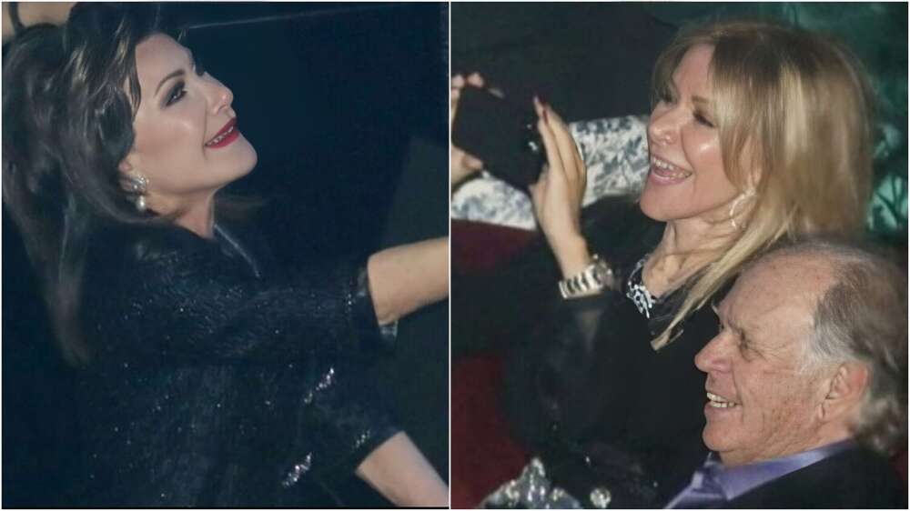 Μάλιστα, η σύζυγος του Θόδωρου Αγγελόπουλου σηκώθηκε και χόρεψε τσιφτετέλι και η Μαρινέλλα την χαιρέτησε από τη σκηνή.