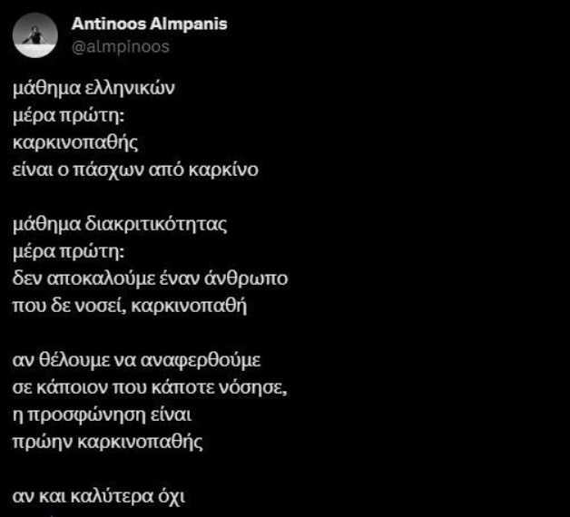 «Δεν είμαι καρκινοπαθής. γιατί γράφετε ανοησίες και ξυπνάτε δυσάρεστες μνήμες;