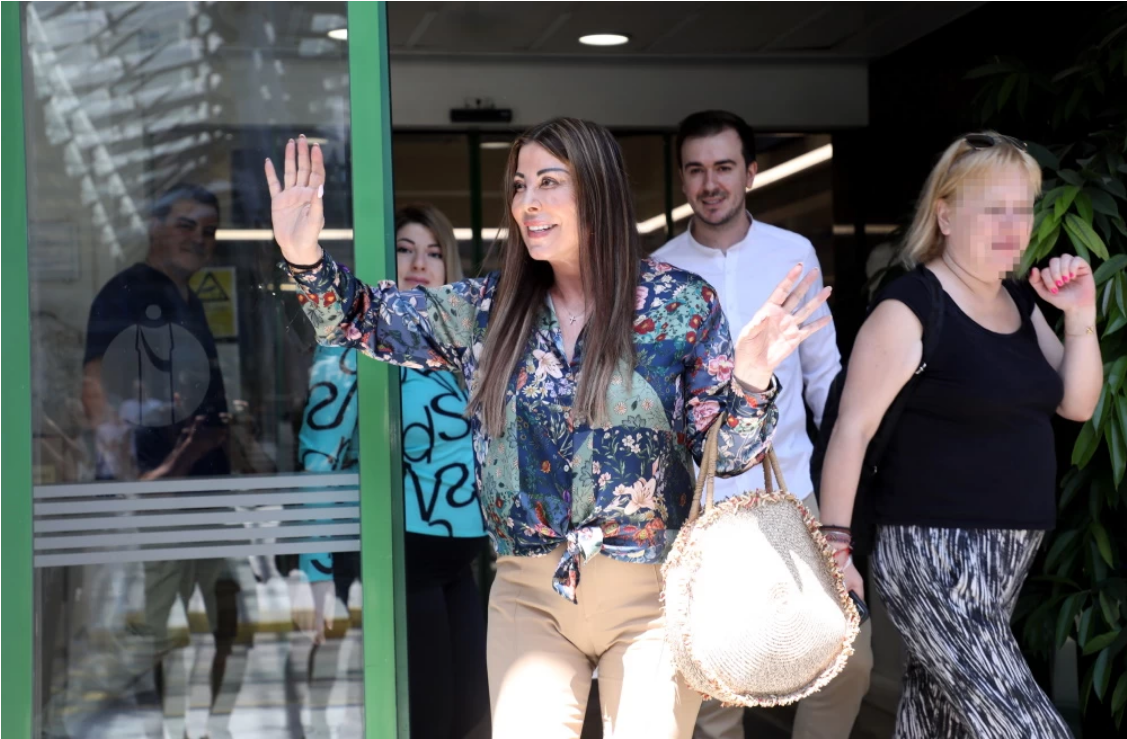 Η Όλγα Κιουρτσάκη βγήκε από το μαιευτήριο μαζί με το νέο μέλος της οικογένειάς της, την κόρη της.Στο πλάι της ήταν ο σύζυγός της Φώτης και τη μητέρα της, Άντζελα Δημητρίου η οποία δεν μπόρεσε να κρύψει τη συγκίνησή της για τον ερχομό της εγγονής της.