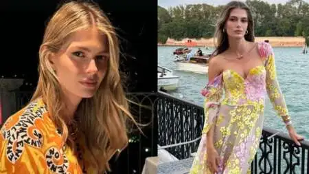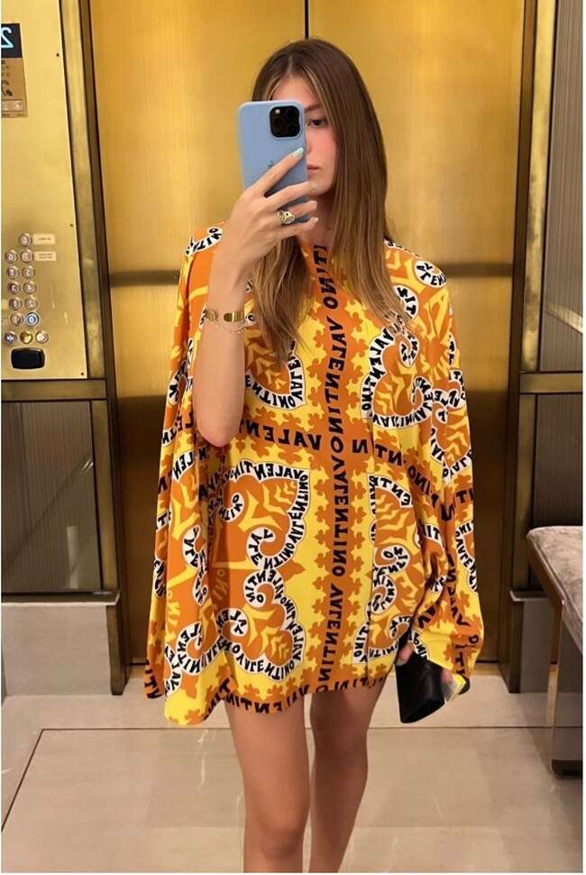Ακόμα, η νεαρή καλλονή ανάρτησε φωτογραφίες από τη βραδινή της εμφάνιση για το δείπνο σε πολυτελές και πανέμορφο εστιατόριο στη λίμνη Κόμο, επιλέγοντας ένα μίνι cape dress Valentino σε αποχρώσεις του κίτρινου.