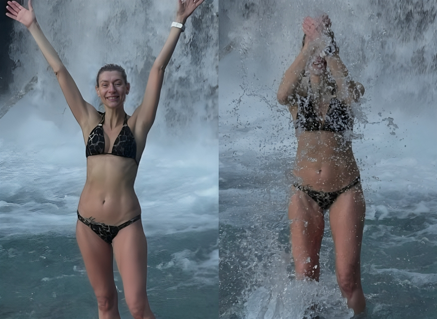 Η γνωστή ηθοποιός προχώρησε σε μια ανάρτηση με αρκετές φωτογραφίες, χωρίς ωστόσο να γνωστοποιεί πότε ακριβώς τραβήχτηκαν, στις οποίες ποζάρει με μπικίνι και απολαμβάνει το μπάνιο της στα παγωμένα νερά ενός καταρράκτη.