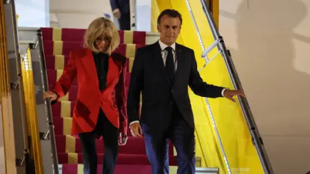 Λαβή για σχόλια έδωσε η επίμαχη σκηνή του ζεύγους Μακρόν στο προεδρικό αεροσκάφος κατά την αποβίβασή τους στο Ανόι του Βιετνάμ, τη Δευτέρα 26/5. Τι κι αν οι δυο τους εμφανίστηκαν λίγες ώρες μετά αγκαζέ σαν να μη συνέβη τίποτα, ο παγκόσμιος σάλος δεν «κόπασε».